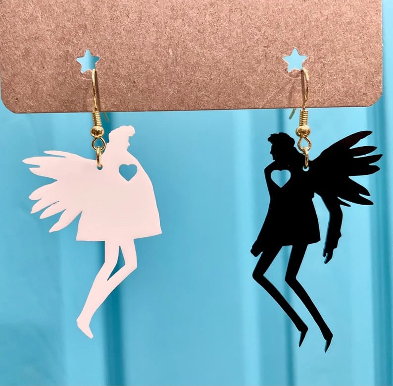 Now you can carry your very own guardian angels above each shoulder. These earrings are made from acrylic and very lightweight (They are delicate so should be handled with care).